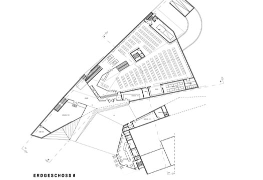 Competition entry for the redesign of a town square The design makes use of height differences in the terrain to accommodate key commercial spaces above and below the pedestrian areas. The sloping terrain creates square-like areas merging EG 0 and EG 1, and connects the council building, the park to the north, and the town hall square. Thus, a multi-purpose inner-city open space is created. The open areas are dynamically shaped, narrowing and widening, travelling up and down around buildings and squares, creating a flowing spatial experience.